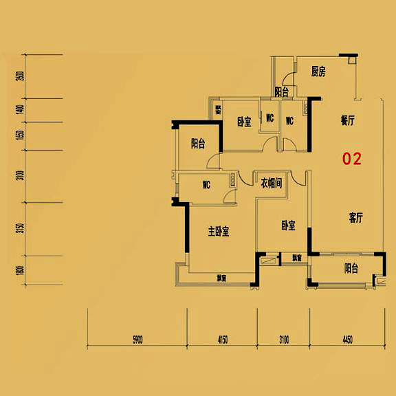 依云天匯B01戶(hù)型 3室面積155.00平米