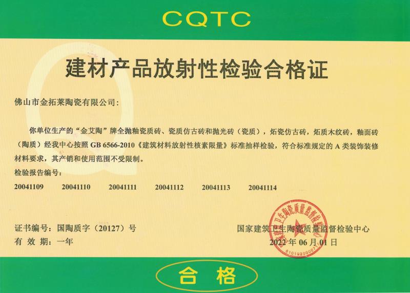 建材產(chǎn)品放射性檢驗(yàn)合格證