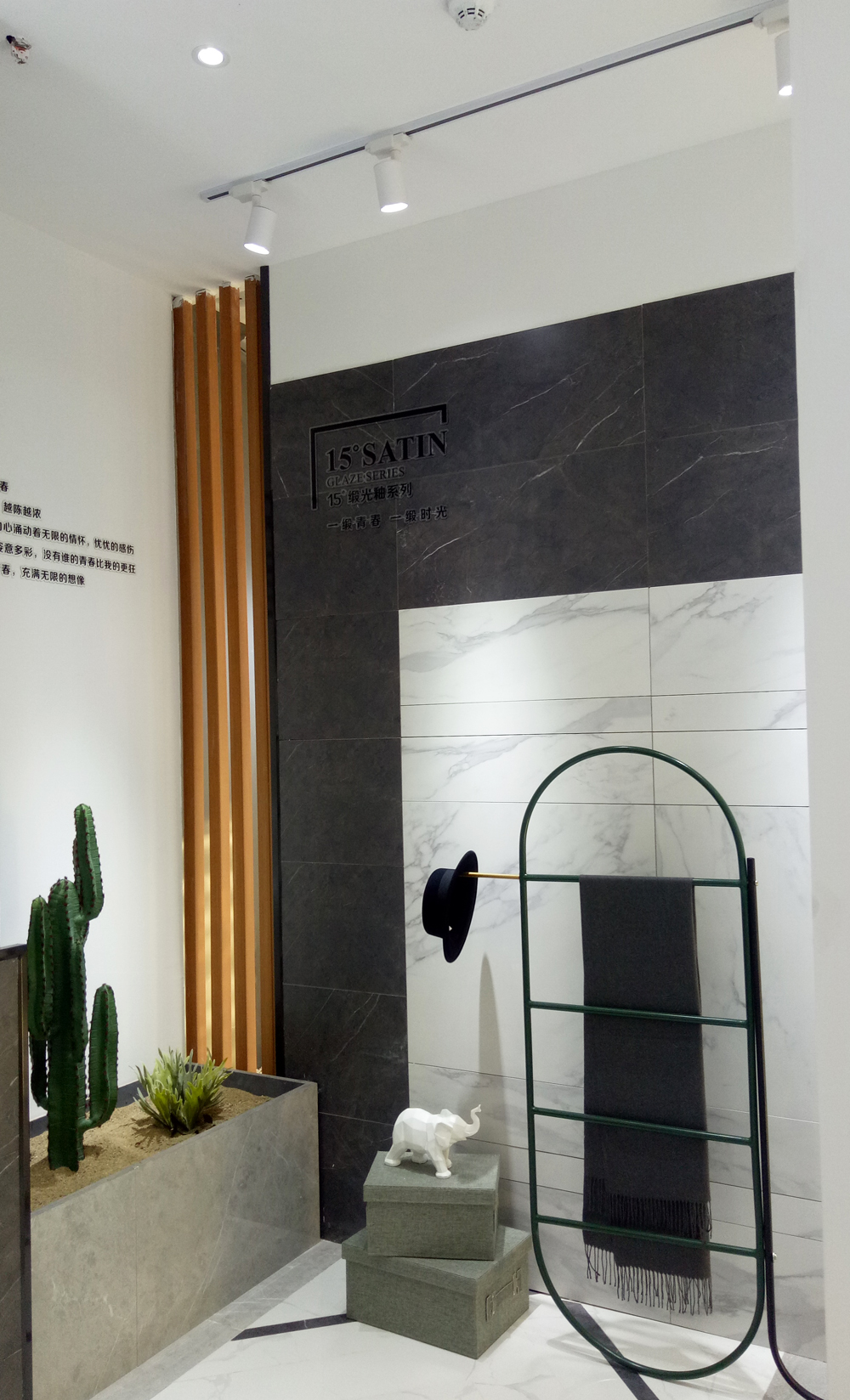 4/這是大板的選材區(qū),選用打豎的陳列方式,射燈照射下的產(chǎn)品,干凈、整潔、大氣、直觀。
