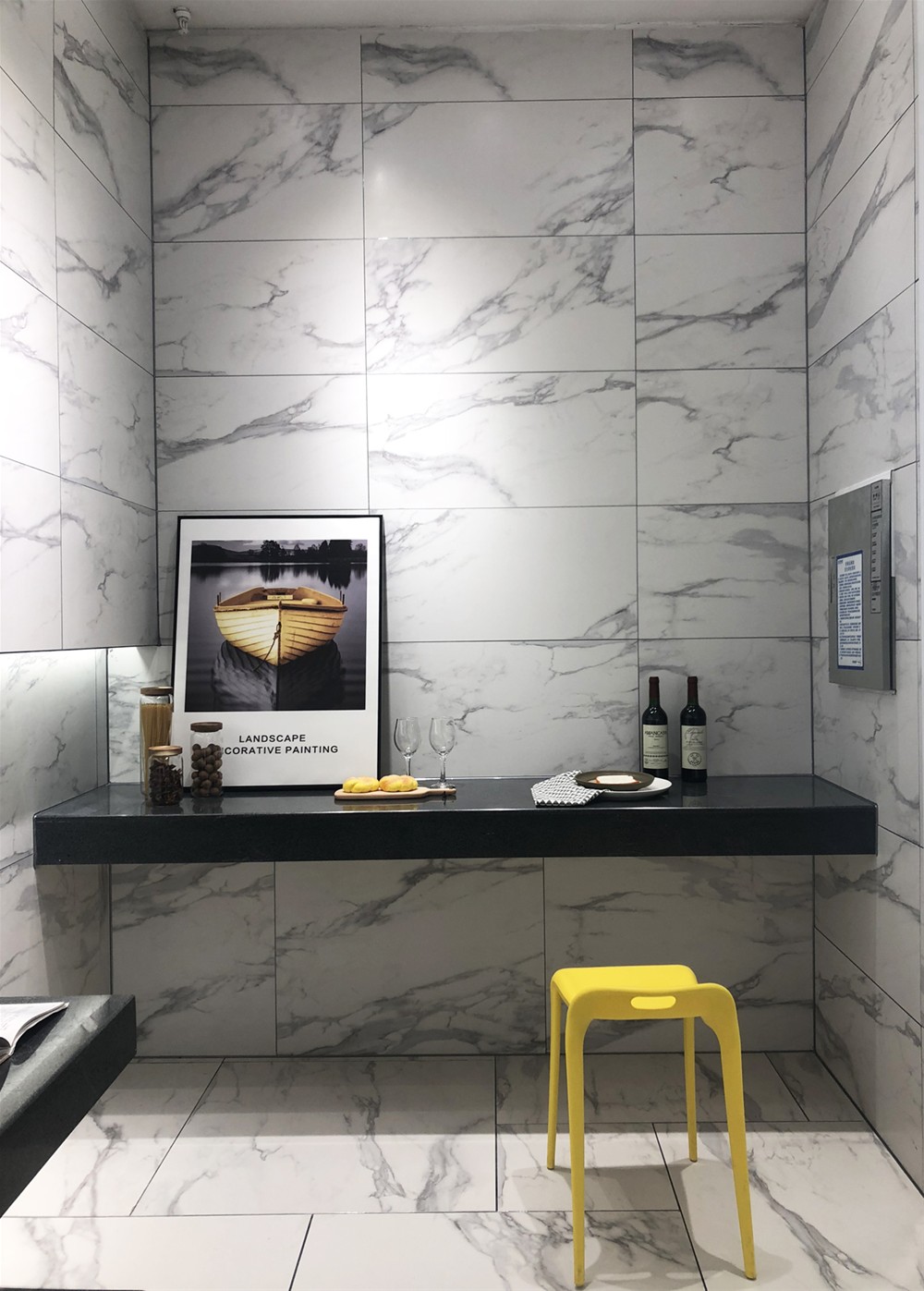 墻磚可作電視背景墻、廚衛(wèi)墻面磚、陽臺(tái)墻面磚使用。整塊白色墻面優(yōu)雅加之隨意的灰色紋理個(gè)性灑脫,是金艾陶的暢銷產(chǎn)品之一。