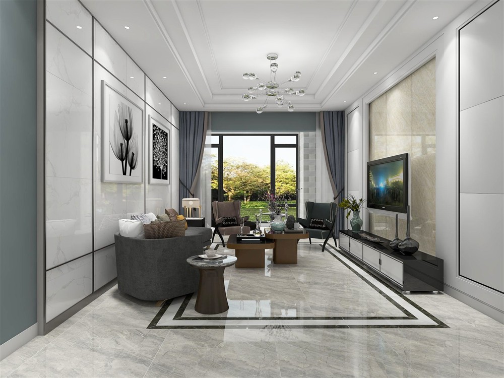 現(xiàn)代簡(jiǎn)約客廳通體大理石地面KTA8301+電視背景KTA8088+沙發(fā)背景墻KTA9821
