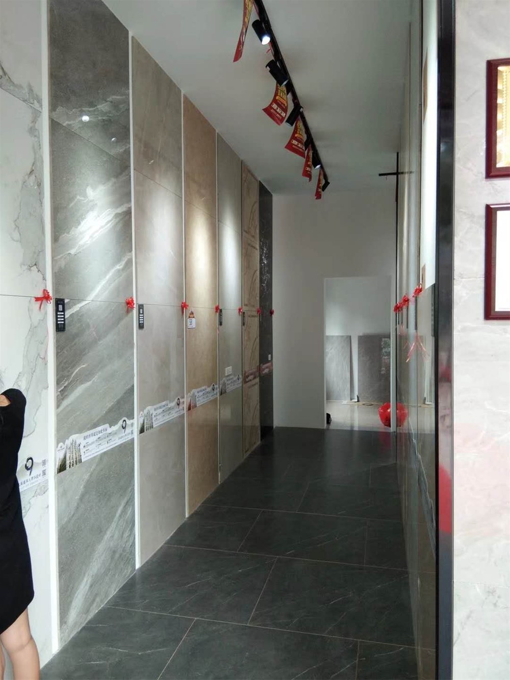 一進(jìn)門是金艾陶logo的形象墻,高級灰的九面通體大理石鋪設(shè)而成,醒目的榮譽(yù)映入眼簾。這形象墻可作電視背景墻、沙發(fā)背景墻、地磚用磚等,適用范圍廣泛,營造大氣優(yōu)雅的空間體驗(yàn)感。