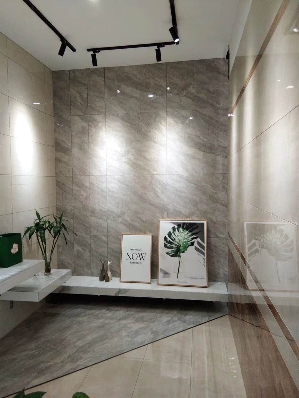 這是由金艾陶艾釉石格蘭石鋪設(shè)的模擬間,與灰色的墻漆搭配,營造墻面的立體感。這墻面也可作電視背景墻、客廳地磚使用。