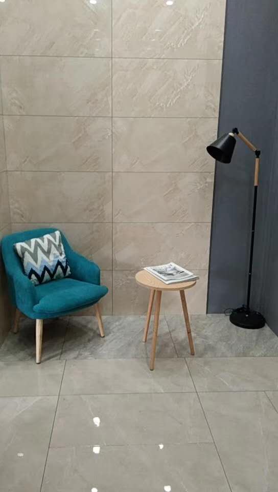 這是15°緞光釉鋪設(shè)的現(xiàn)代風(fēng)格模擬間,沒有更多造型,簡單的瓷磚切割鋪貼,優(yōu)雅大氣的瓷磚紋理運(yùn)用錯位鋪貼而成的墻面。