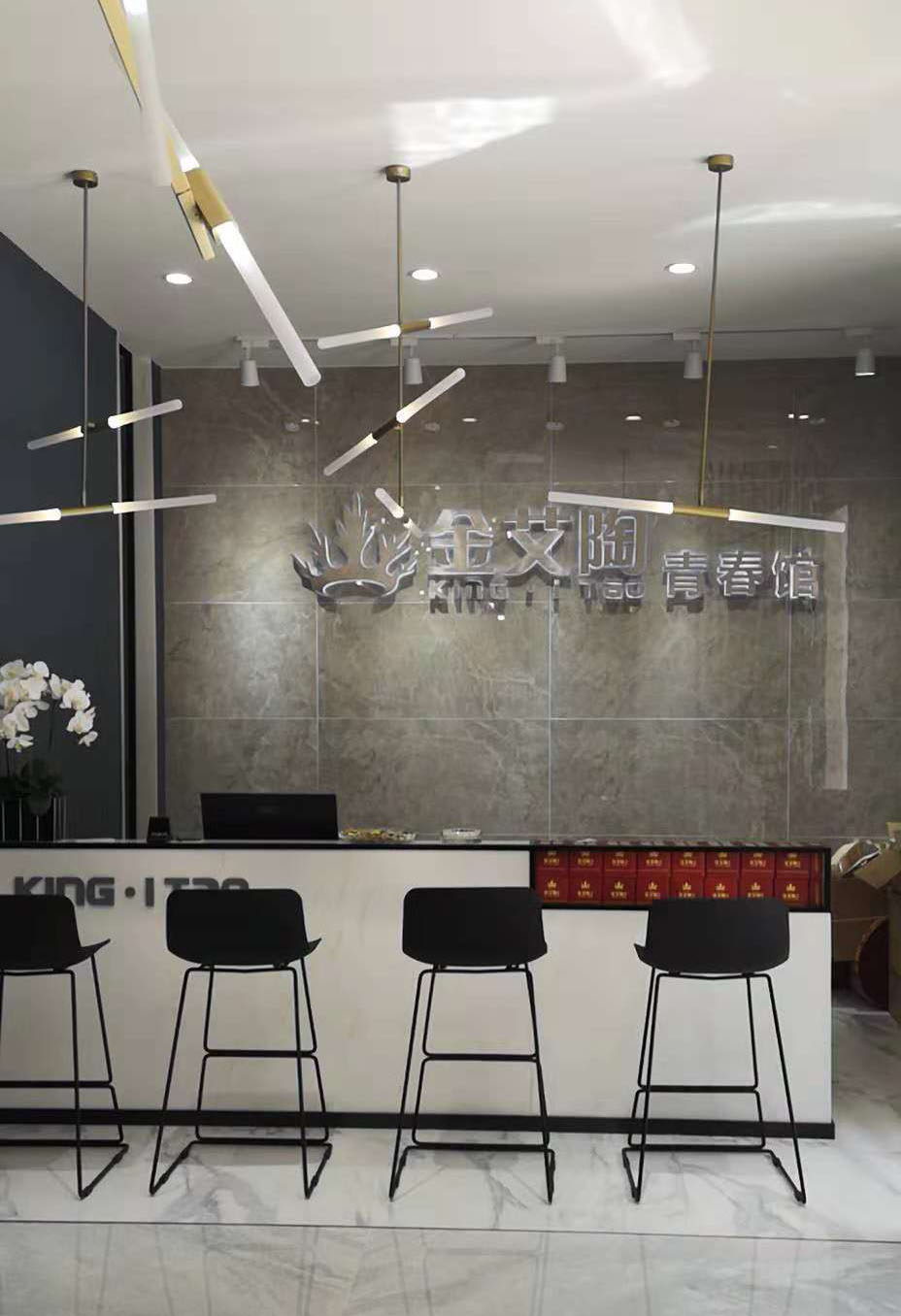 這是金艾陶云南保山青春館的形象臺(tái)和形象墻,上圖由灰色九面通體大理石鋪貼的前臺(tái)背景墻,可作電視背景墻和客廳地磚鋪貼使用,下圖是由綠植拼接的品牌形象墻,散發(fā)出勃勃的生機(jī)。