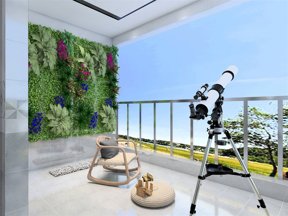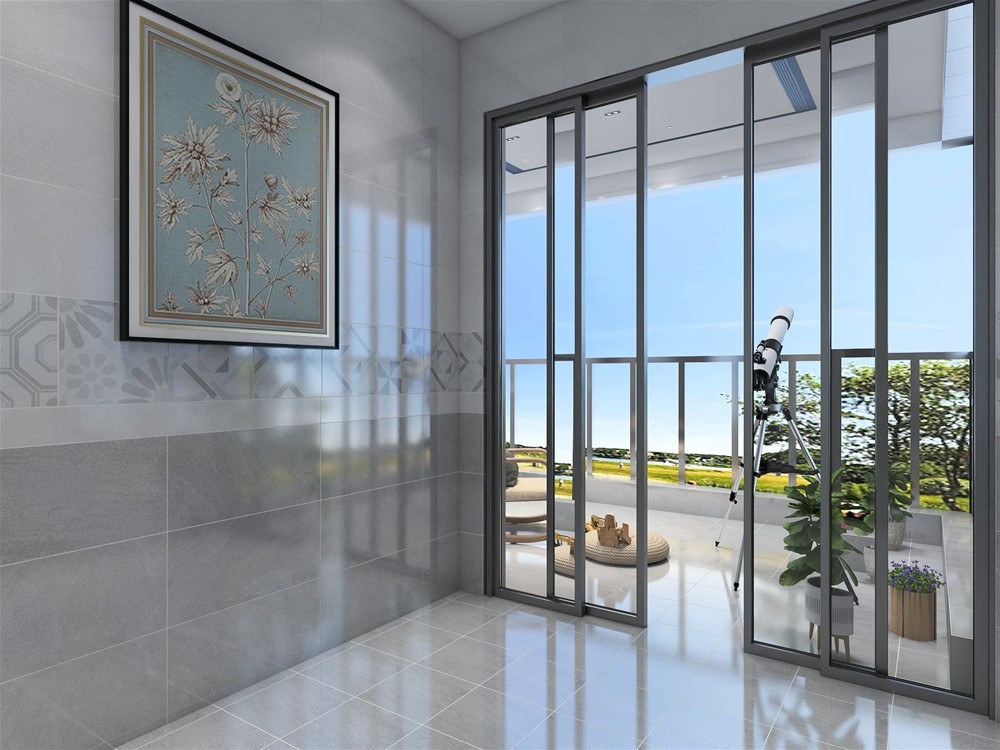 陽臺鋪貼的磚與廚房一致,淺灰色瓷磚打造質(zhì)感空間同時也可以作為鋪色突出綠植的勃勃生機(jī),營造自然愜意的空間。