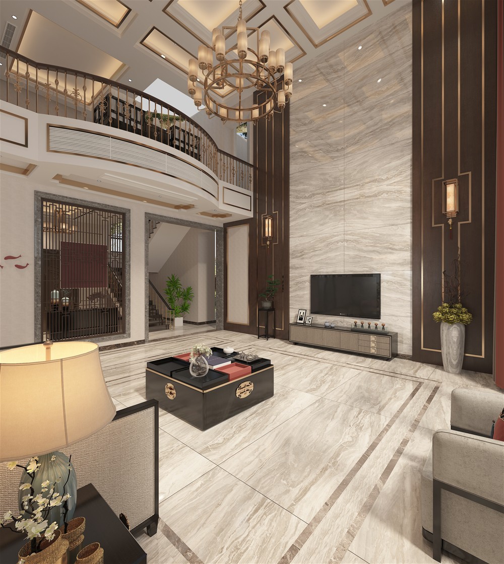 新中式客廳,大氣的外容,呈現(xiàn)無與倫比的視覺盛宴,粗礦的紋路襯托大氣不失理智的空間美感,貫穿于整個(gè)空間,能與室內(nèi)裝飾交相輝映,成為新中式風(fēng)格的卓越代表。