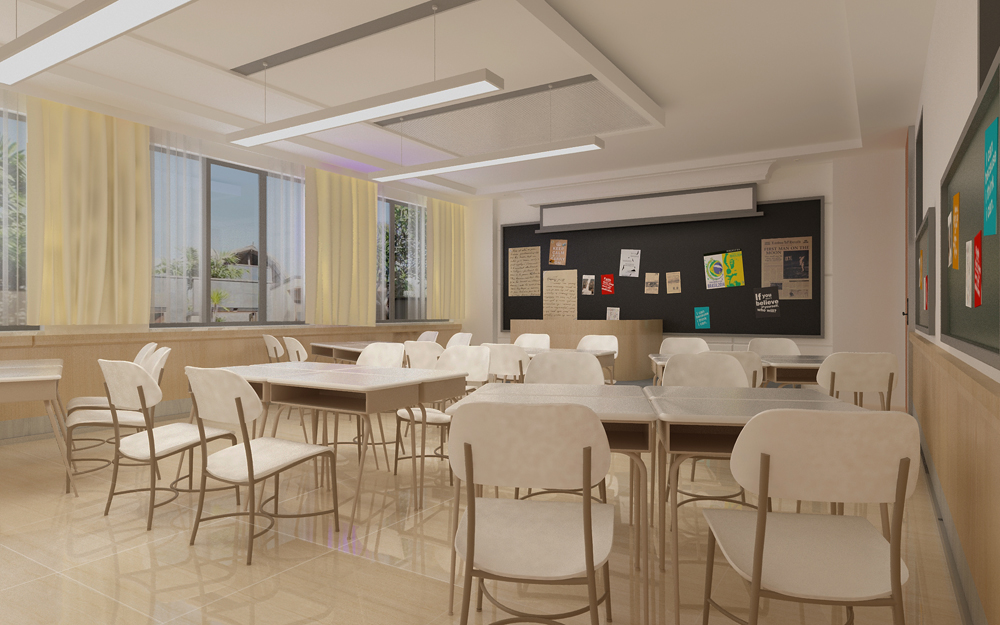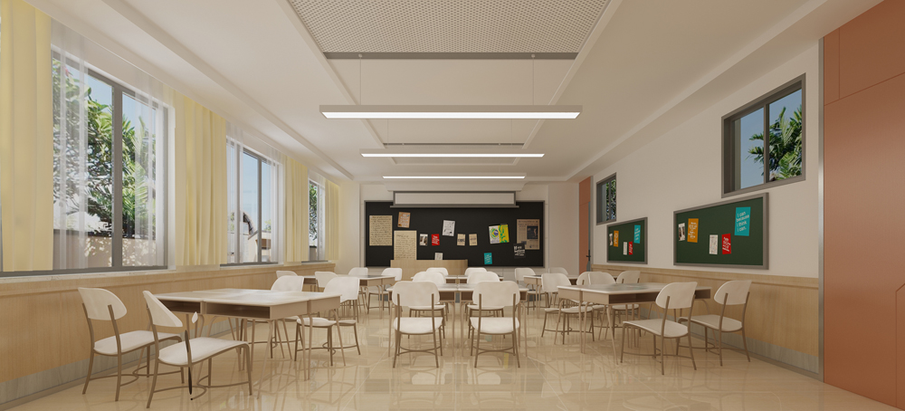 教室地磚選用米黃色鋪貼,窗簾也是淡淡的淺黃色,色彩的搭配營(yíng)造了溫馨的學(xué)習(xí)氛圍,座位的安排由原來(lái)的兩人座變成四人組合,學(xué)習(xí)氛圍更強(qiáng)烈,易于交流,打破傳統(tǒng)學(xué)習(xí)模式。