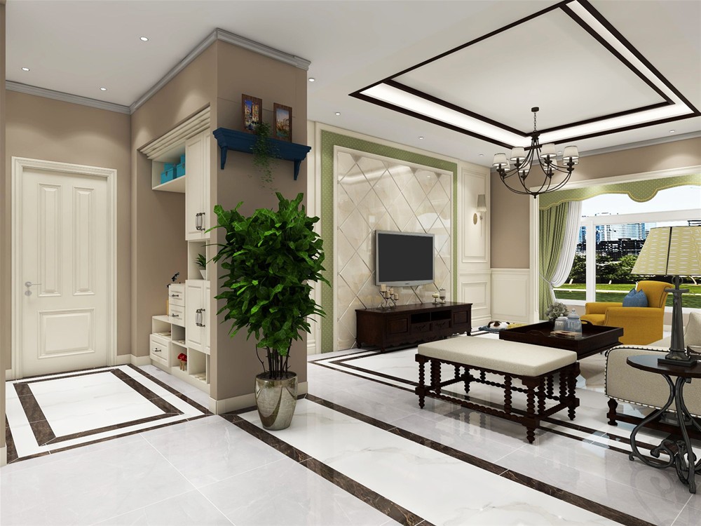 美式田園風格對植物的選擇有著較高的要求,一般來說選擇的多數(shù)是不開花的綠色植物,可以均勻的分布在客廳茶幾旁、裝飾柜旁等等,形成錯落有致的格局。