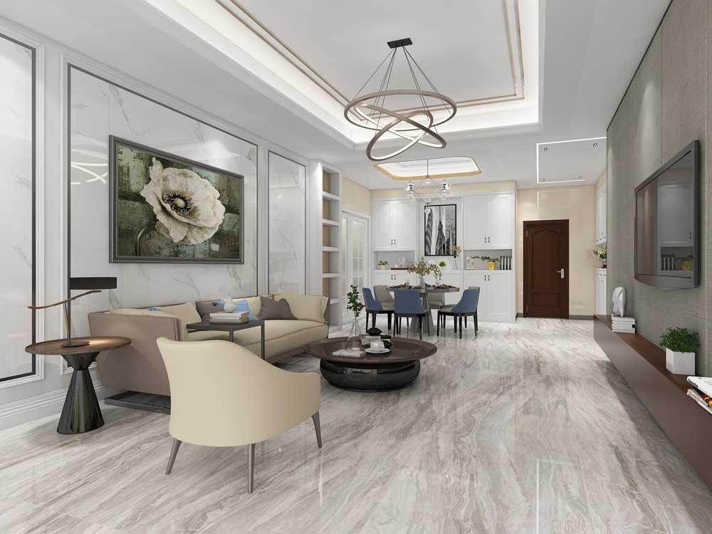 大戶型客廳在軟裝和風(fēng)格選擇上有很大的空間,吊頂造型設(shè)計相對簡潔,隱藏式的燈帶能夠渲染出更加溫馨的家居氛圍,再搭配數(shù)盞筒燈及水晶燈的點綴,營造出時尚大氣的視覺效果?,F(xiàn)代風(fēng)格的電視背景墻多會采用瓷磚、大理石來裝飾,布藝沙發(fā)也是現(xiàn)代風(fēng)格的絕佳搭配,再配合大小合適的茶幾,簡潔實用又美觀大方。