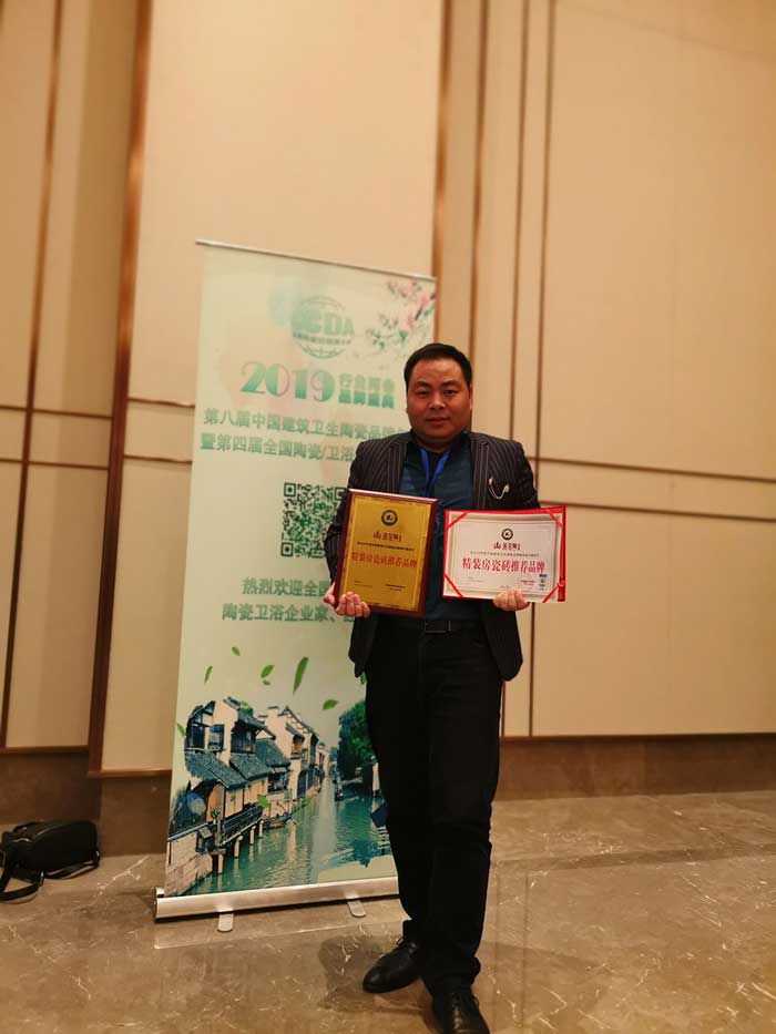 金艾陶瓷磚品牌上海代理商王銳上臺(tái)領(lǐng)獎(jiǎng)