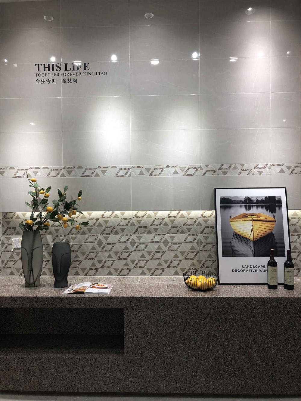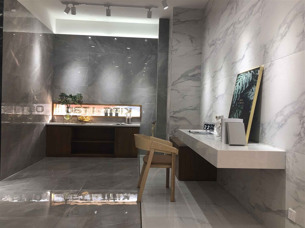 上圖是由艾釉石KYP8118直鋪的墻面,磚面的一層釉是不是很亮?摸上去手感還很好,同行人都知道,我們是佛山本地唯一一家有釉料公司的瓷磚公司,艾釉石是我們的明星產(chǎn)品,質量有保障,這款磚同樣適用地面和電視背景墻的鋪貼,看了這么多款灰色調瓷磚,不知道您有沒有喜歡的呢?