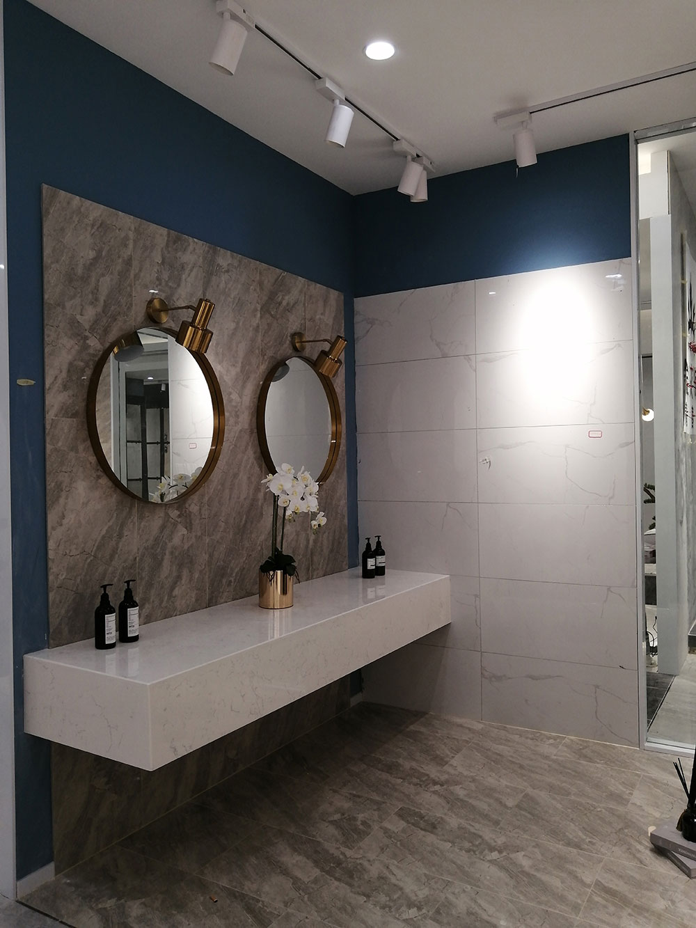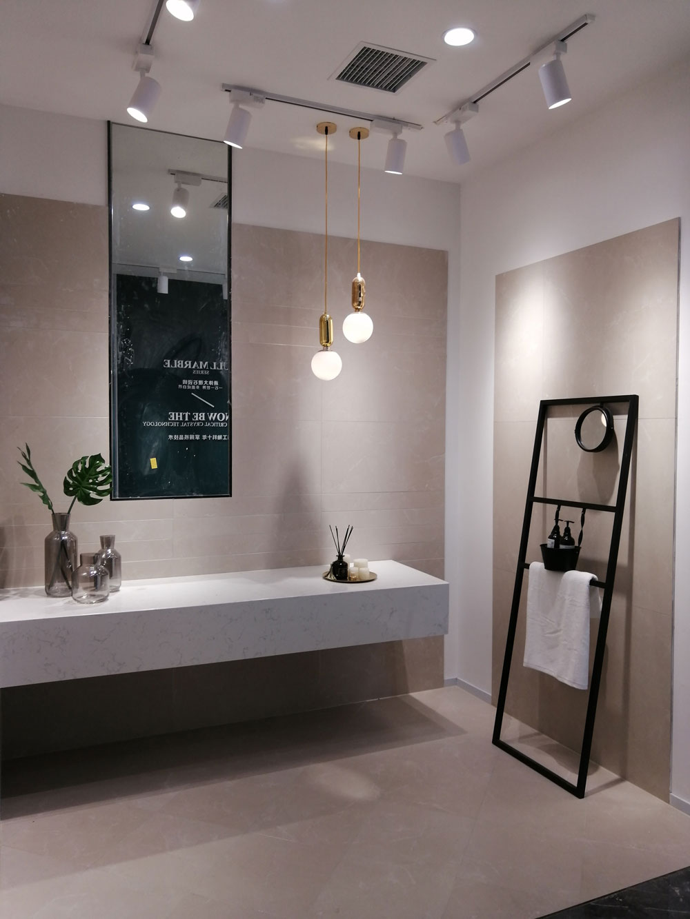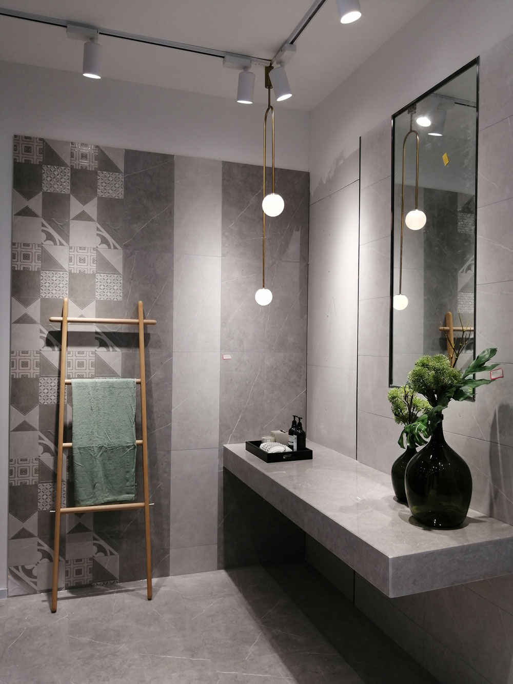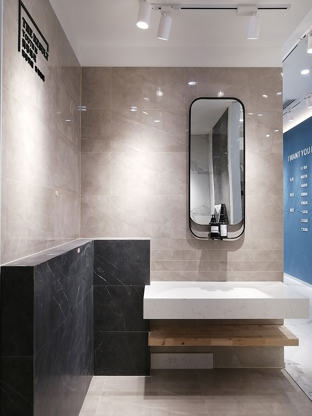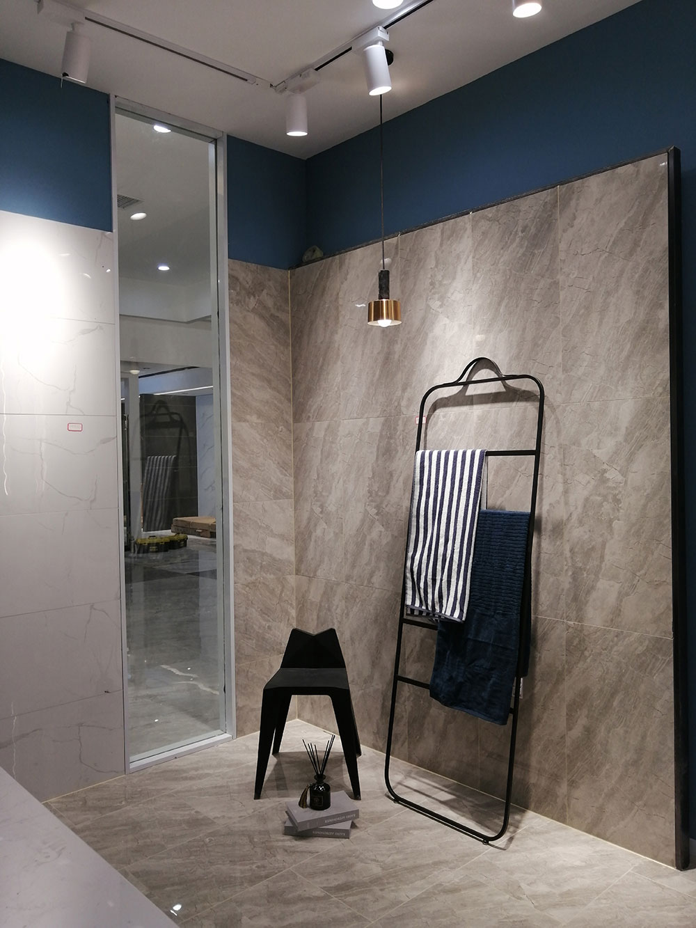 由通體大理石瑪雅灰KTA8301鋪貼,整個(gè)空間以灰色作為主色調(diào),灰色是最近家裝最流行的顏色,自帶高貴與品味,優(yōu)雅沉著,磚面紋理大膽粗獷,營(yíng)造沉穩(wěn)大氣的空間氛圍,墻面與地面選用同款產(chǎn)品,營(yíng)造空間協(xié)調(diào)統(tǒng)一的空間。