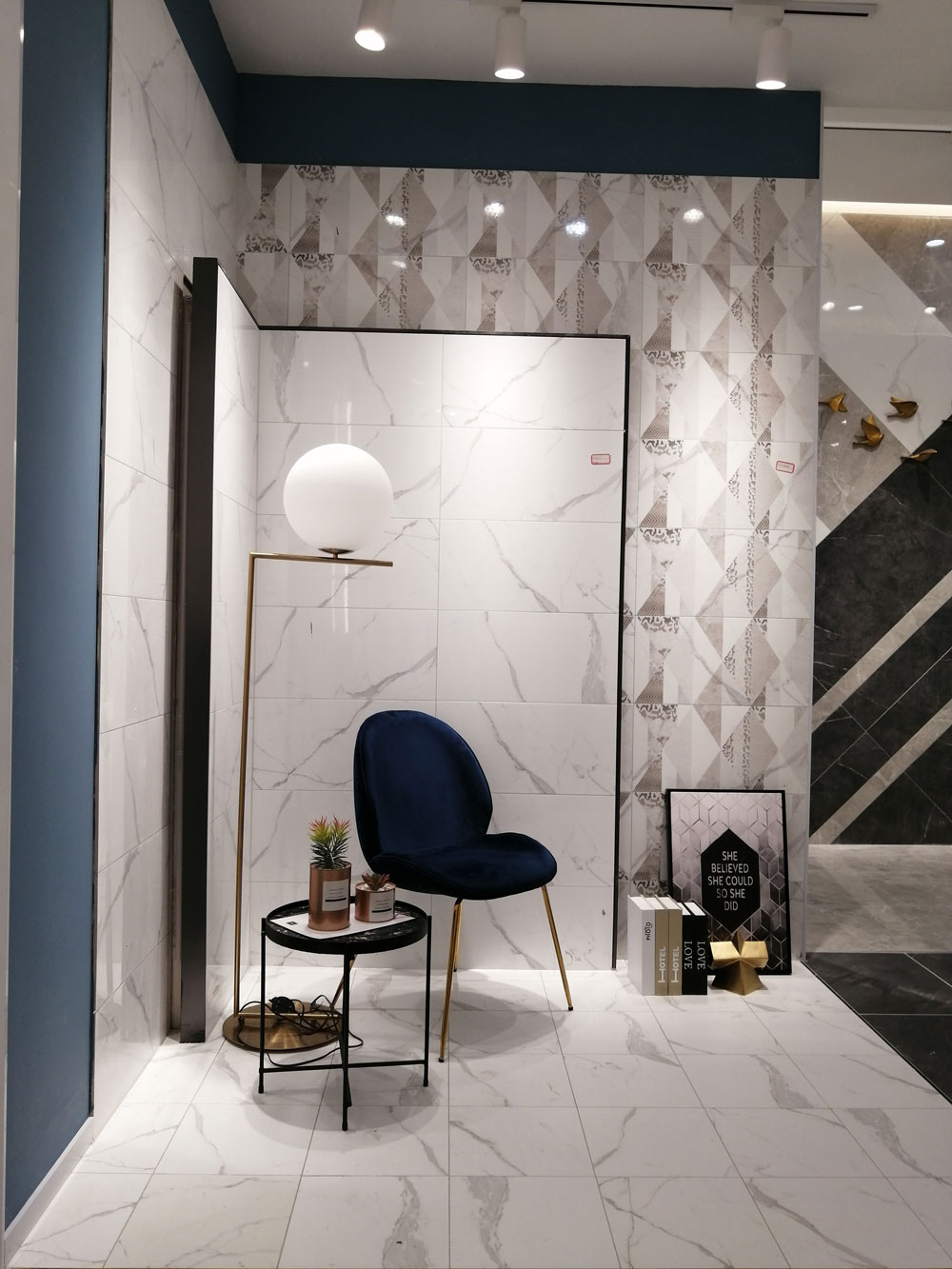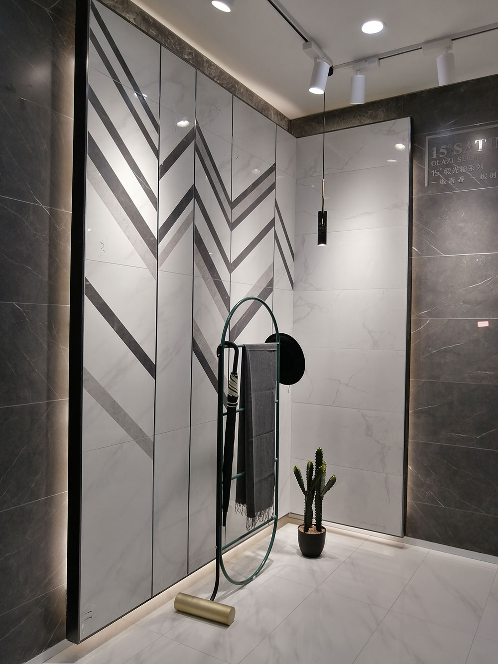 由通體大理石維納斯灰KT9831切割后通鋪,空間營(yíng)造的是輕奢的感覺(jué),整個(gè)空間大面積使用維納斯灰,灰色是一種無(wú)極色,與黑色相搭配讓整個(gè)空間體現(xiàn)出簡(jiǎn)單、奢華。整個(gè)空間采用了平鋪,素雅的平鋪更加突出磚本身的紋理與質(zhì)感,返璞歸真,通過(guò)細(xì)節(jié)體現(xiàn)品味和奢華。