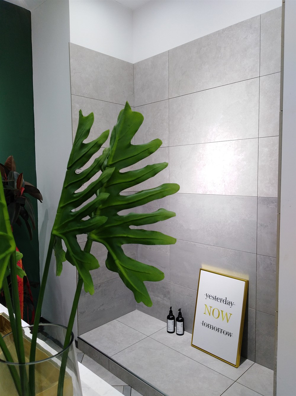 這是由15°緞光釉KFD8805奧斯曼灰與KFD8806銀線灰洞加工成400*800規(guī)格拼鋪的現(xiàn)代簡約衛(wèi)生間,深與淺的過渡,磚面紋理斑駁,散發(fā)出復(fù)古的氣息,作為衛(wèi)生間用磚不僅耐臟且起到很好防滑作用。用到陽臺、廚房等區(qū)域同樣能完美綻放。