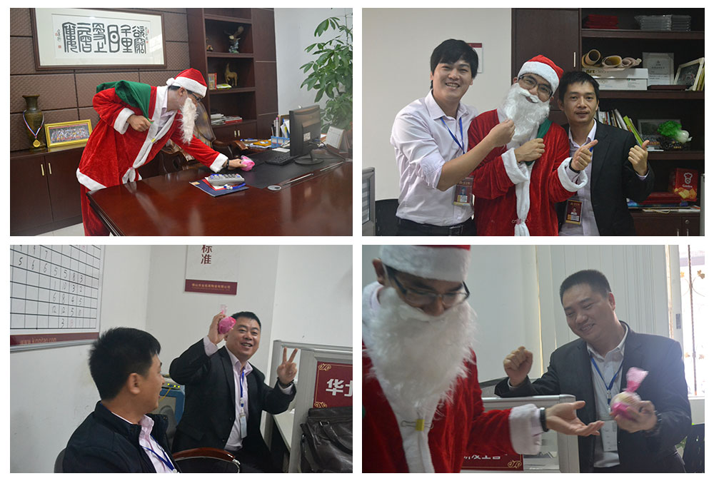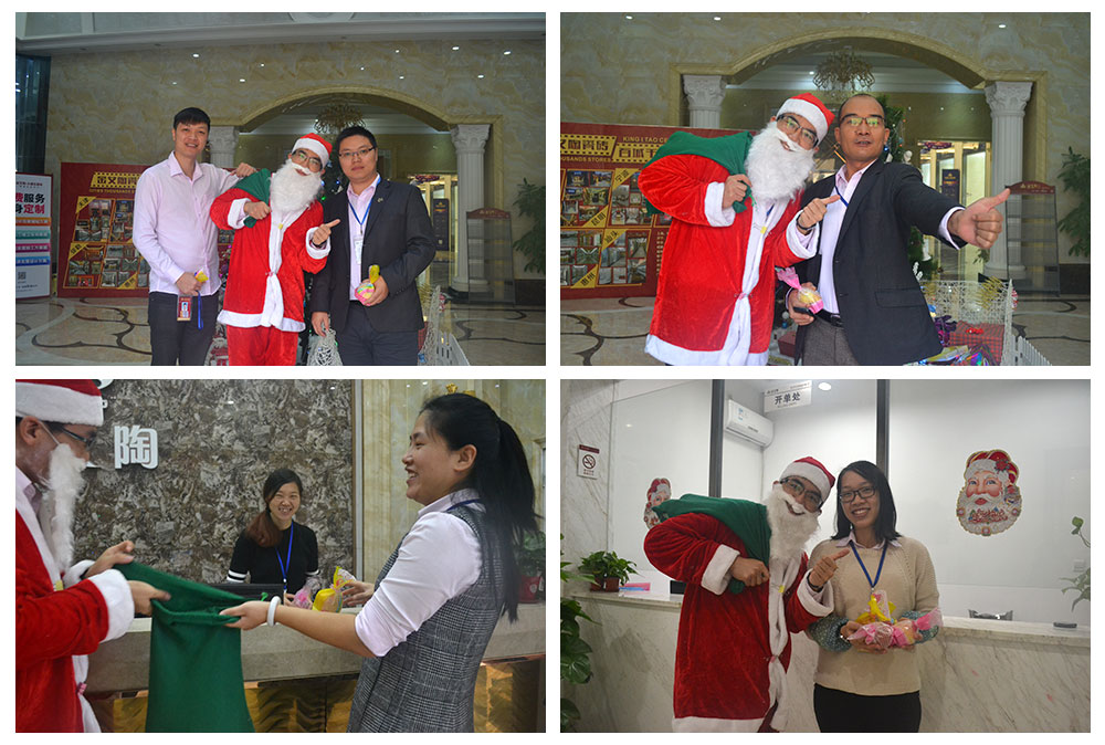 金艾陶瓷磚同事接過圣誕禮物并合影