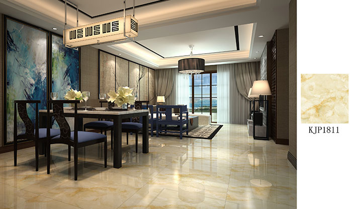 生活美學(xué)是自然而然的流露,客廳的每一處都透著浪漫與時(shí)尚。地面主要鋪貼金剛釉瓷磚香檳玉KJP1811,搭配大理石瓷磚黑金花KYB8017,唯美典雅,讓家成為人們心中最溫馨的港灣。