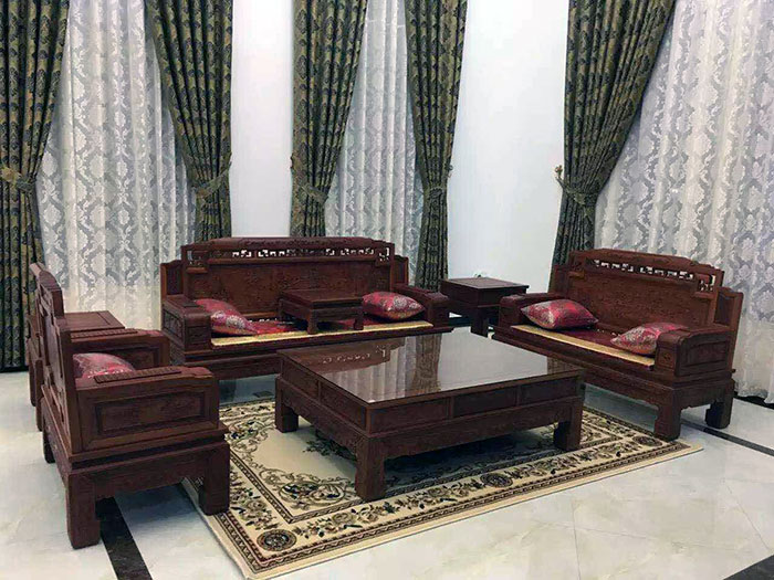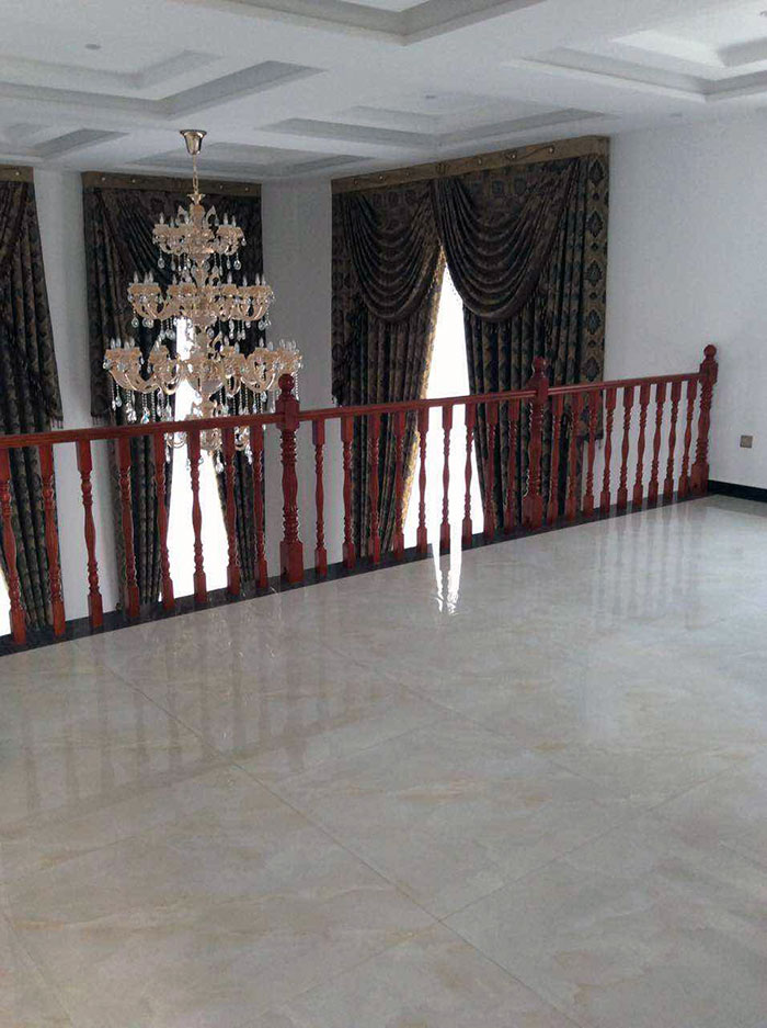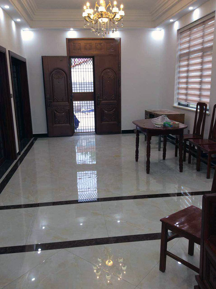 古色古香的紅木桌椅擺放在客廳正中,上面的雕花精美絕倫,地毯上的花紋顯示出其不俗的藝術價值,幾面碩大的窗簾傾瀉而下,將整個空間的格局無限放大,金艾陶玉石瓷磚天山玉KYP8001的鋪貼運用,使整個空間在濃濃古韻中滲透了幾許現(xiàn)代氣息。