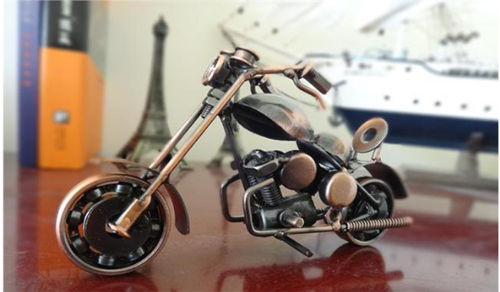 以鐵為原材料,通過熔鑄、焊接等方式制成的小擺件,常見的鐵藝品有插花桶、筆筒筆座、鐵質(zhì)模型等.