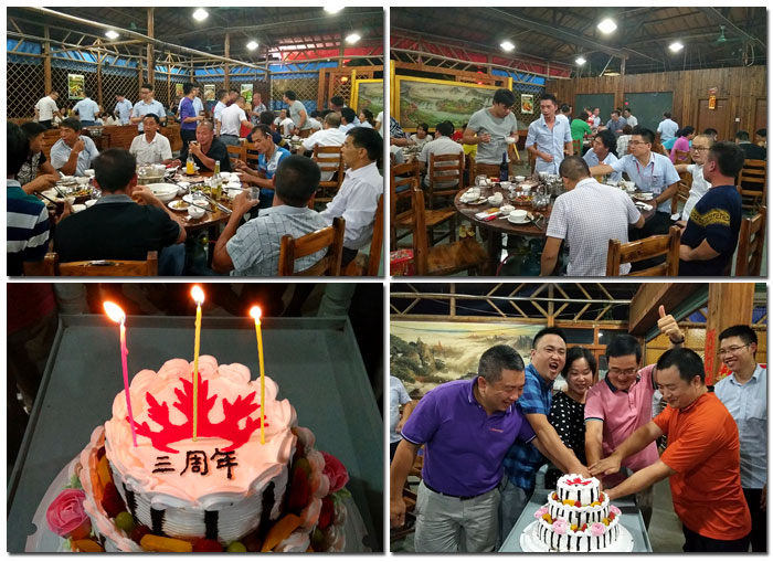周年慶典上,還準(zhǔn)備了一個(gè)大蛋糕,舉辦了一個(gè)歡快的慶祝party。全體金艾陶人歡聚一堂,切蛋糕、分蛋糕,氛圍其樂融融。