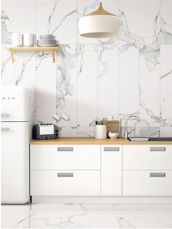 通體大理石瓷磚在瓷磚坯體上深度接近的還原天然石材巖層質(zhì)變效果,紋理質(zhì)感通透更強;干拌、濕拌、分管道下料技術(shù),從坯體底層到面釉層做到表里如一,整個磚體從任何角度及任何切割方法都能達(dá)到完美的紋理呈現(xiàn)效果,做到真正的紋理通體;通體大理石瓷磚產(chǎn)品經(jīng)過高噸位壓機壓制成型及高溫?zé)疲善反u坯色澤更加細(xì)膩,性能和品質(zhì)更高。