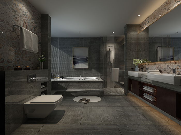 墻面與地面保持一致,用別具一格的現(xiàn)代仿古磚鋪貼,烘托簡約、時尚的品味。