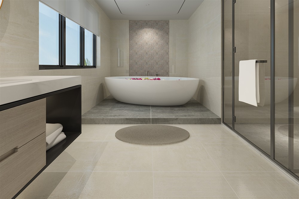 最簡約的鋪貼形式,“方格鋪”對于外形橫平堅直的現(xiàn)代仿古磚來說,省工省料且自然大方,完美呈現(xiàn)出一個耐看舒心的空間。