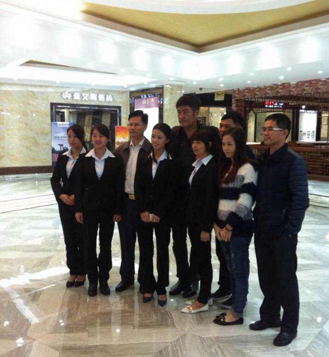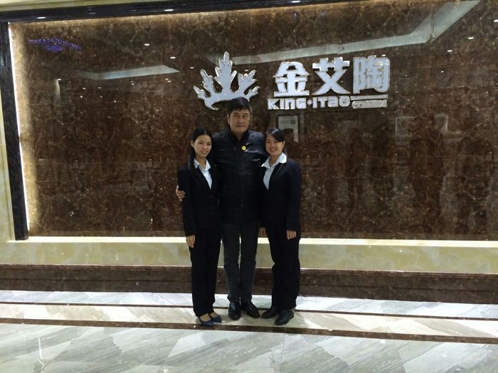 惠州泰安陶瓷家具博覽中心金艾陶瓷磚旗艦店總經(jīng)理鄭平陪同林威參觀了金艾陶瓷磚并在飯?zhí)迷O宴招待林威一行。
