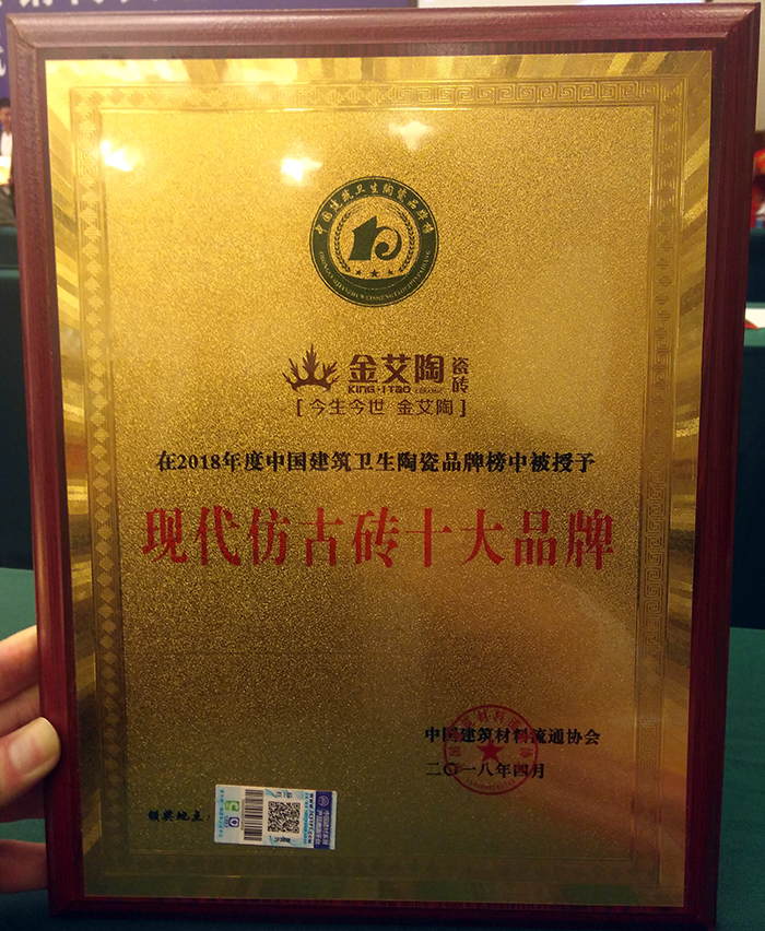 “現(xiàn)代仿古磚十大品牌”獎(jiǎng)牌及證書(shū)