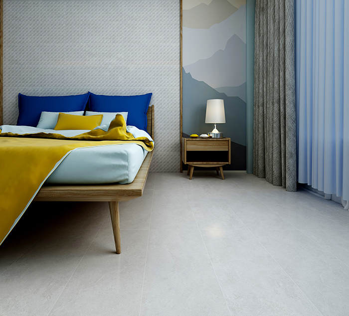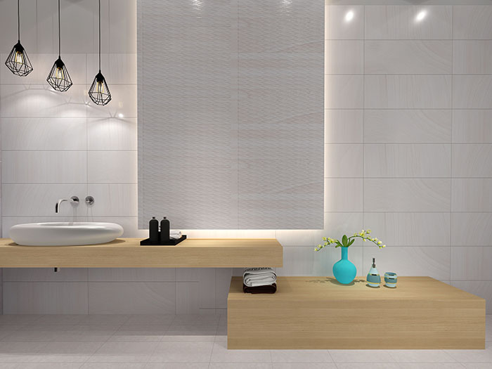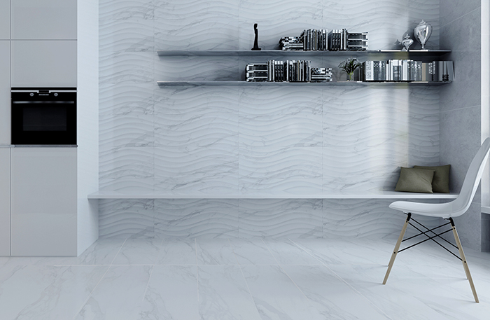 白色的表面素雅而寧?kù)o,灰色線條橫跨其中,自然而純粹,色澤素凈大方,光感柔和自然,似乎是將一層薄薄的絲綢印刻在瓷磚的表面,縷縷輕絲纏繞,觸感舒適細(xì)膩,帶來(lái)如綢緞般絲滑體驗(yàn)。