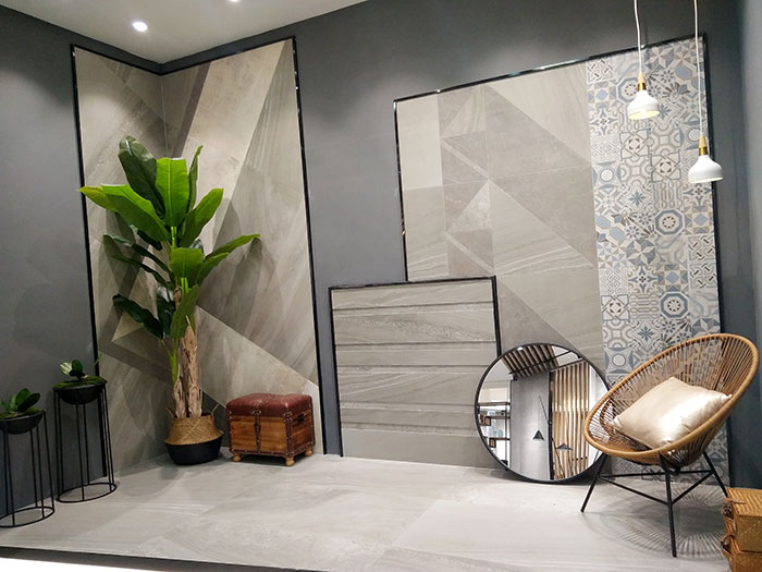 金艾陶現(xiàn)代仿古磚15°緞光釉目前主要有800×800mm規(guī)格8款,600×1200mm規(guī)格7款,300×800mm規(guī)格7款。