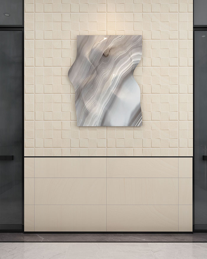 擁有灰色調(diào),深度還原天然石材,白色紋理錯(cuò)落有致的分布其中,靜謐而靈動(dòng),紋理流暢和豐富,完美呈現(xiàn)出天然石材的自然色澤和高貴氣質(zhì)。