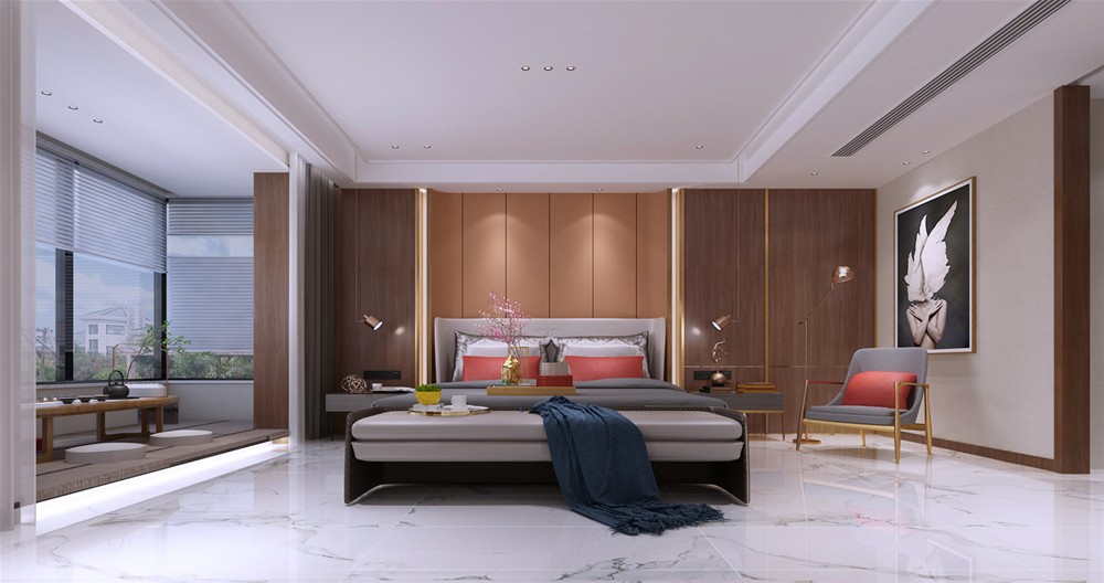 臥室在色彩方面秉承了傳統(tǒng)風格