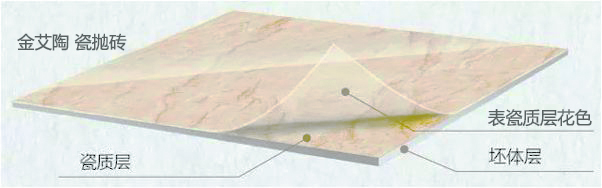 金艾陶瓷拋磚,在拋光磚坯體上,立體噴墨滲花替代平面印花,在瓷質(zhì)層內(nèi)部發(fā)色,花色更豐富細(xì)膩,花色滲透入里,入骨三分,立體感更強(qiáng),突破拋光磚只靠布粉料單調(diào)、呆板的發(fā)色局限,裝飾美感更多彩。