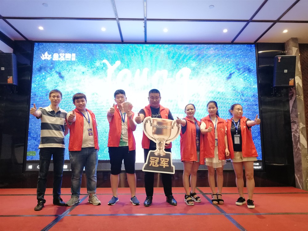 金艾陶瓷磚市場部總監(jiān)劉小良為冠軍隊頒獎