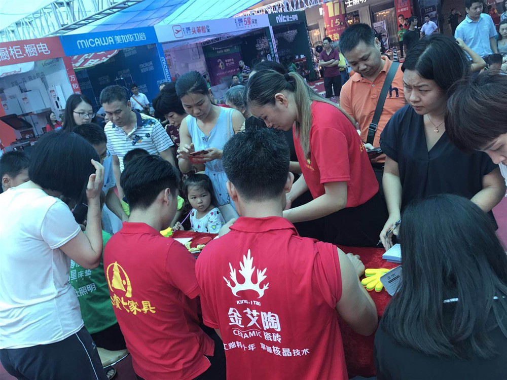 7月14-15日,金艾陶瓷磚深圳專賣店攜手松寶大家具(公明店)“展眧價(jià)到,勁惠全城”活動(dòng)盛大舉辦?;顒?dòng)兩天,金艾陶瓷磚深圳專賣店當(dāng)仁不讓地成為松寶大家具(公明店)的主角,凝聚了旺盛的人氣,不斷吸引著消費(fèi)者排隊(duì)搶購,最終以不俗的業(yè)績(jī)圓滿收官。