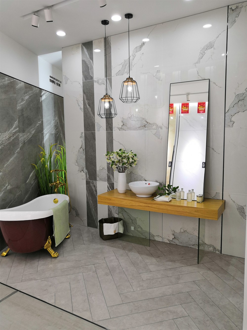 一類是時尚前沿的15度緞光釉,一類是現(xiàn)在熱銷的通體大理石 。