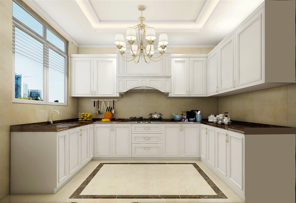 廚房體現(xiàn)簡歐最為明顯的就是整套櫥柜,白色的櫥柜摒棄繁雜的雕刻工藝,呈現(xiàn)簡約大氣的品味,櫥柜表面深褐色的大理石臺面,時尚整潔又耐臟;U型廚房看起來也格外寬敞,設(shè)計師巧妙地把灶臺和洗菜盆兩個區(qū)域區(qū)分開,讓主人用起來舒心方便。地磚采用15°緞光釉瓷磚,能上墻下地,米黃色溫馨又高雅,波打線與櫥柜臺面顏色一致,呈現(xiàn)空間的和諧統(tǒng)一。