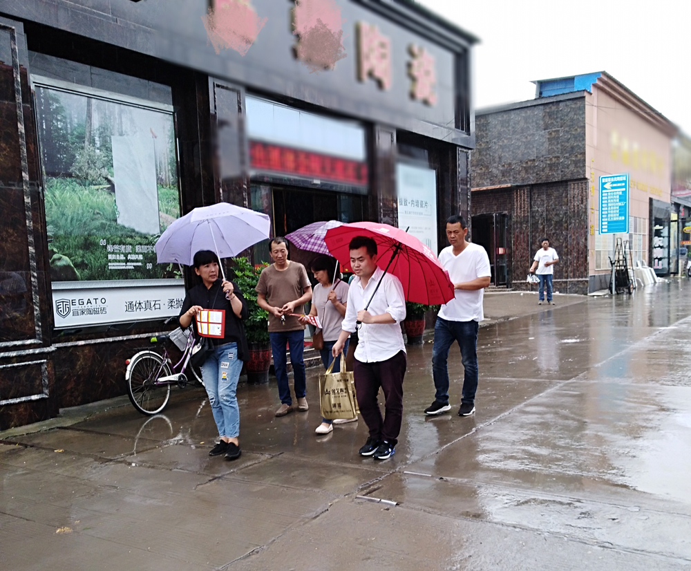 9月15日當(dāng)天,金艾陶策劃人員黃經(jīng)理到達(dá)洛陽(yáng)專(zhuān)賣(mài)店,與高經(jīng)理一起帶領(lǐng)河南洛陽(yáng)全體店員到商場(chǎng)、步行街、賣(mài)場(chǎng)附近派發(fā)傳單。即使是下著雨,也依然堅(jiān)持撐著傘走過(guò)大街小巷,不放過(guò)任何一個(gè)機(jī)會(huì),為金艾陶一線(xiàn)人員點(diǎn)贊,是你們的付出讓這次開(kāi)業(yè)取得卓越的成績(jī)。