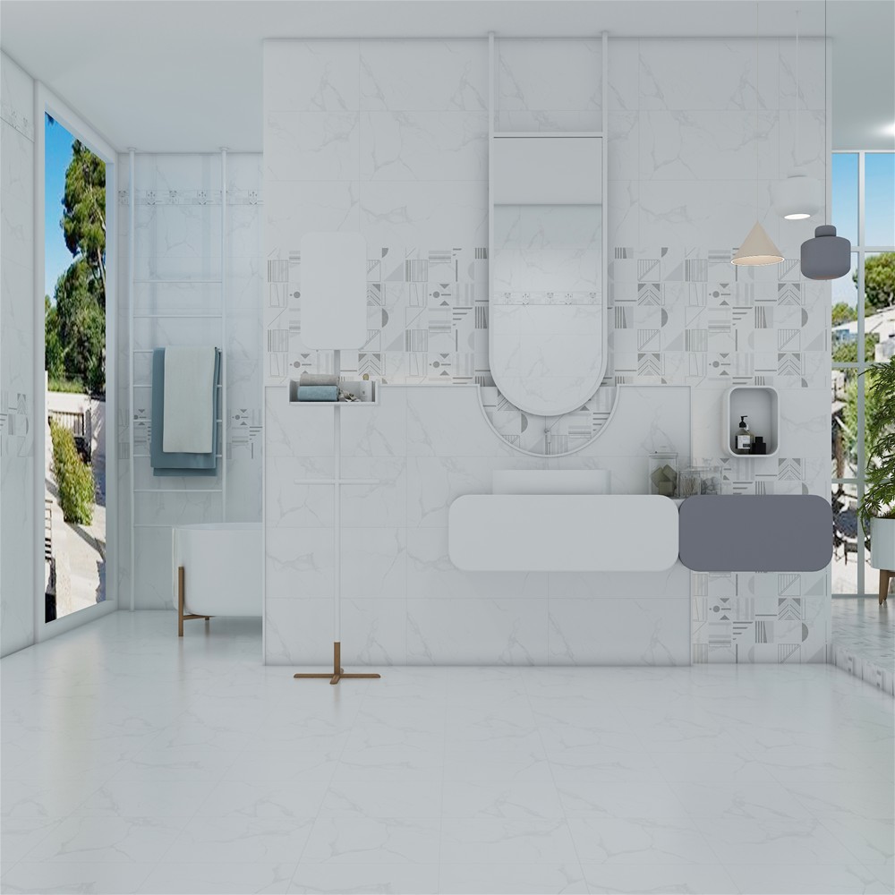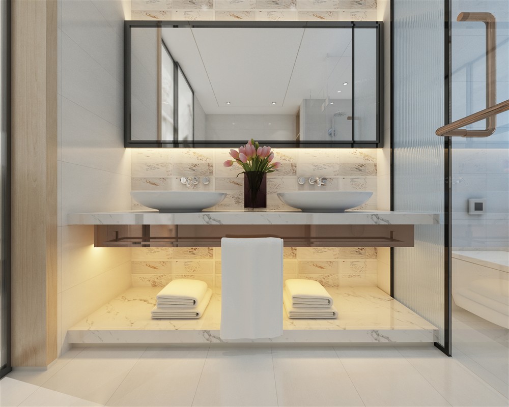 溫潤如雪的“肌膚”表層,細膩雅致,透射出不言而喻的質(zhì)感,如漢白玉般的潔白無瑕,再鋪之以叛逆而不頑劣的灰色紋理,盡善盡美地演繹出了爵士白清風脫俗與桀驁不馴的特質(zhì),使其拼接鋪貼的空間優(yōu)雅、脫俗、氣質(zhì)、意境無窮。